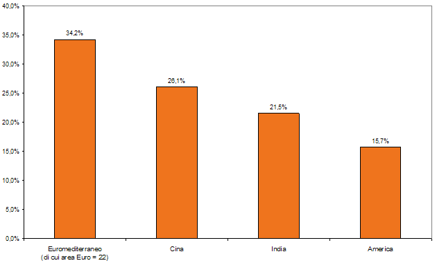 - Euromediterraneo 34,2% (di cui area Euro = 22) del campione